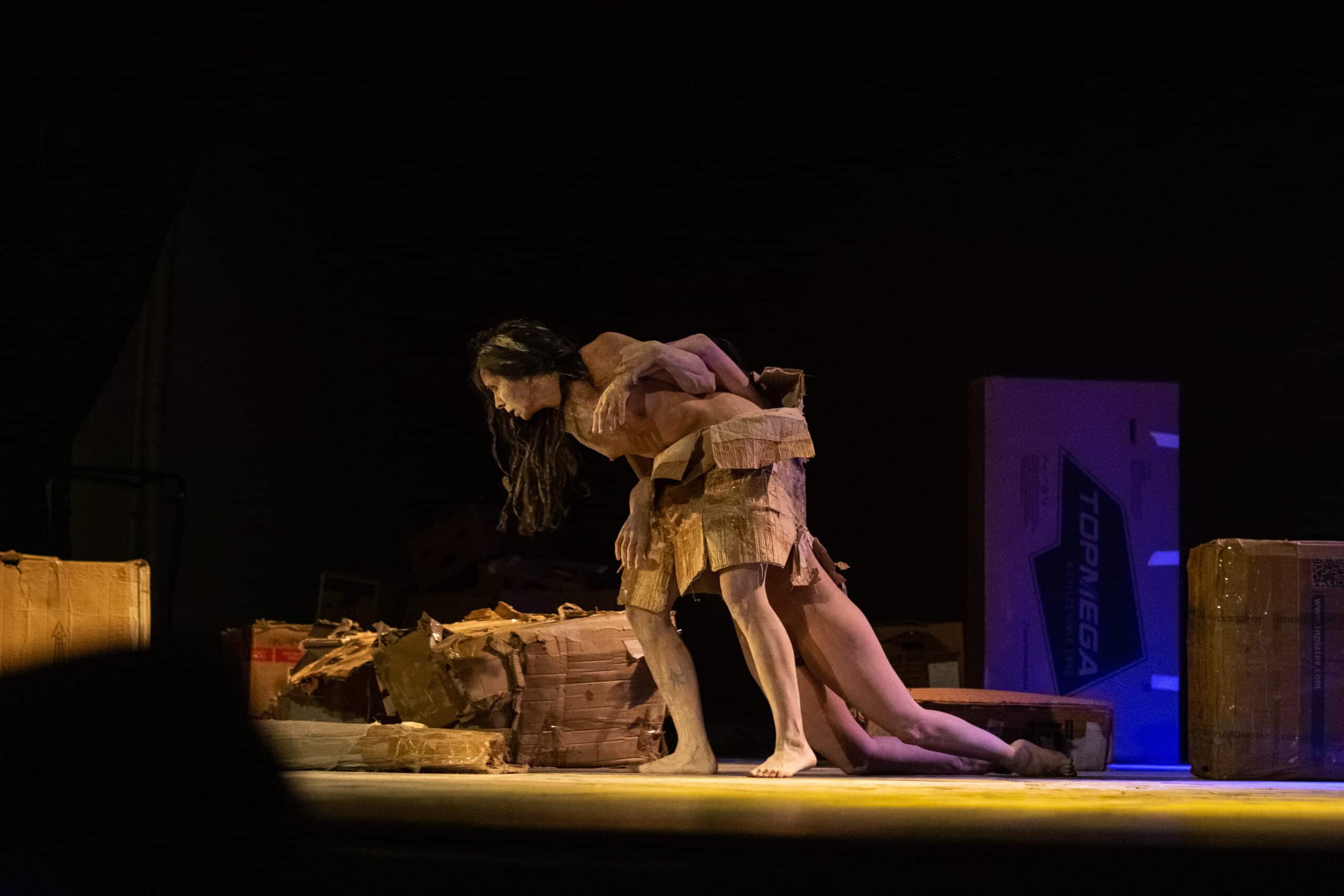 En “Piel y huesos” de Merlo, San Luis, dos cuerpos salen a la superficie y la habitan, sacuden el polvo con su desnudez. Saben que la única “forma” que crece, es la que muta. La danza es terrena, sometida al peso de lo real, y el empoderamiento es la única ventana hacia la libertad. La obra de Mabel Dai Chee Chang relata las relaciones humanas en supervivencia azotadas por las fuerzas de la naturaleza, exponiendo a los personajes a una animalidad constante. Nació de la investigación sobre el objeto ‘caja de cartón’, un objeto que piensa, respira, tiene voluntad propia y se transforma en signo escénico vital. “Estamos contentas de haber podido presentar la obra acá con las expectativas de que podamos después girar con ella por otras localidades. Fuimos bien recibidas también en Sáenz Peña y en Las Breñas. Estamos felices de formar parte de la fiesta y de conocer muchos grupos”, nos dijo su directora tras la función en el Auditorio de la Casa de las Culturas. La puesta cuenta con las interpretaciones creativas de Laila Sanz y Macarena Montivero, el diseño sonoro de Martin Cristini y Macarena Montivero, el diseño de luces de Martín Patlis, la técnica en luces de Laura Veiga, la técnica en sonido de Belen Hillar y la asistencia técnica escenográfica de Barbara Schnyder.