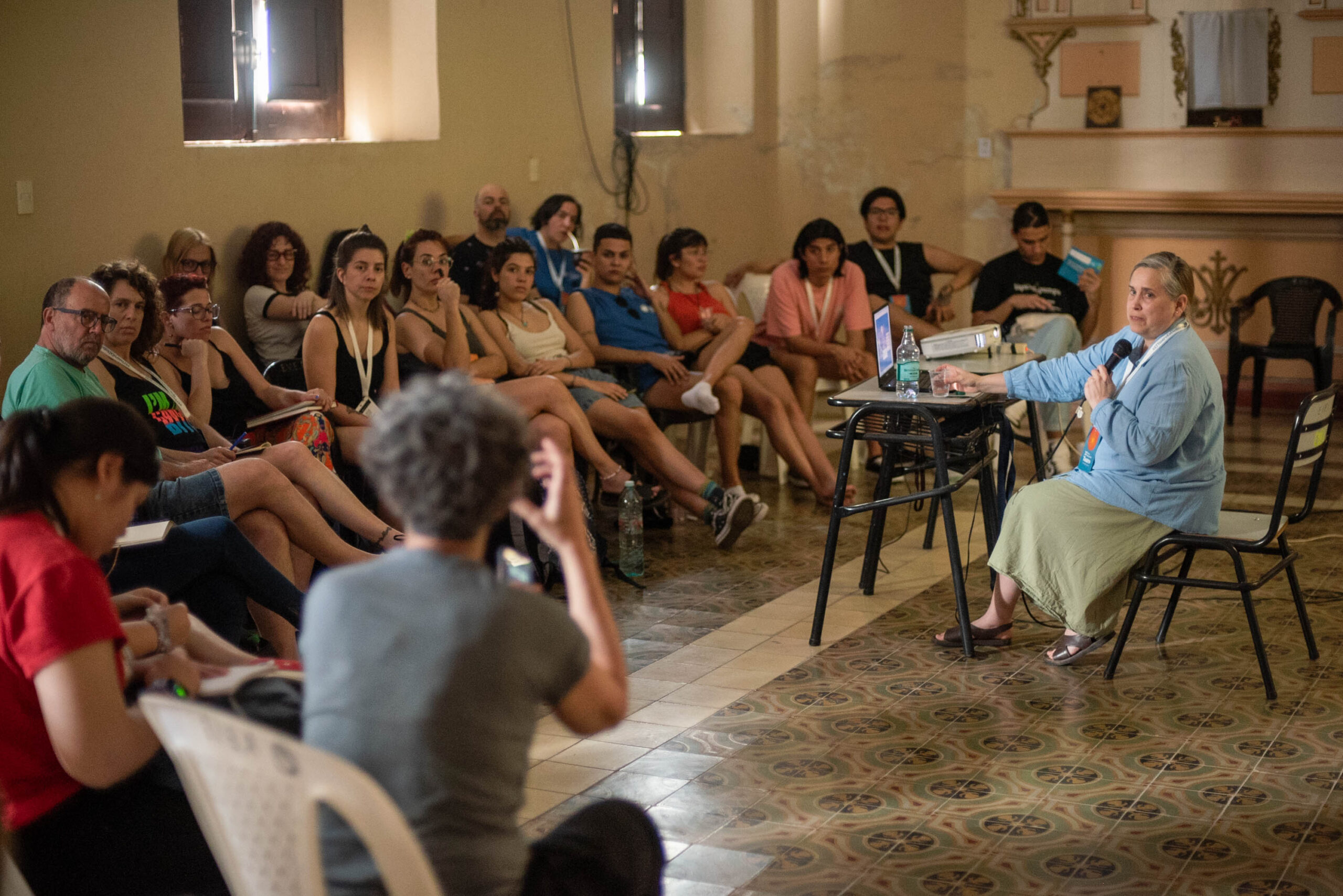 Respecto a las actividades especiales de 15 a 17 horas en el salón azul de EVEA – Escuela de Artes se realizó el taller de «Coordinación de la Intimidad», un espacio de diálogo para la construcción de acuerdos basados en el consentimiento informado en el que se satisfagan y representen a todas las partes involucradas. Estuvo a cargo de las representantes del Quehacer Teatral Nacional del INT Claudia Quiroga y Popi del Prato, junto a María Soledad Marciani, graduada en Artes performativas por la Universidad de Boloña, Italia, con una tesis sobre las primeras experiencias teatrales en Estados Unidos con coordinación de intimidad. Esta misma acción se repetirá el 18 de septiembre de 14 a 16 horas en Paseo Cultural Castro Barros (sala Federal). «Una coordinadora de intimidad establece las líneas de cómo se trabajará con este enfoque que consiste en lo que los actuantes estén dispuestos a hacer. Aporta estrategias, herramientas y elementos que puedan ayudarlos en las escenas de intimidad y luego es un trabajo colectivo donde todos intervienen y ella acompaña el proceso de producción de la escena», explicó Marciani.