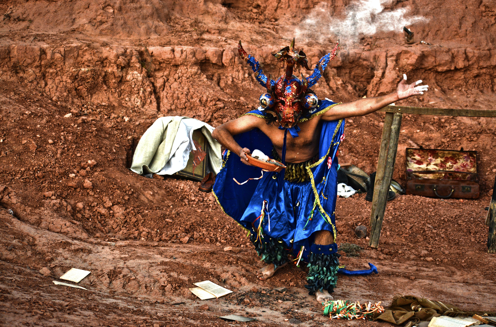 -«El hombre cóndor. Espíritu viviente del aire» surge a partir del cruce de diversas materialidades que nos remiten al Mito, la Historia y la Poesía: el Cóndor, figura central de la mitología andina; Avelino Bazán, sindicalista de Mina El Aguilar (Jujuy) desaparecido el 26 de octubre de 1978 y los poemas que suelo escribir bajo el seudónimo Nicanor H. Vallejo Mamani. A partir de estos fragmentos e imágenes disparadoras como la inmensidad de la Puna, el desierto, la montaña y su poesía, el mito del hombre cóndor, el trabajo en la mina de hombres y mujeres silenciosxs, la historia de Jujuy y sus desigualdades antes, durante y después de la última dictadura militar, el nombre de un héroe desconocido Avelino Bazán en las paredes de la ciudad, la escritura de su diario: El por qué de mi lucha, entre 1976 y 1978 durante su cautiverio en la cárcel de Villa Gorriti (Jujuy); constituyen el punto de partida para la construcción de la dramaturgia. Nuestra búsqueda como grupo de teatro del NOA fue la de una poética propia, que surge de lo geográfico, lo social- político, lo cultural, lo artístico, el habla, la dinámica de los cuerpos, su modo de relacionarse y de crear. El ritual aparece como parte del hacer cultural de Jujuy, donde se mezcla el universo andino y su cosmovisión con la religión católica, dando como resultado un sincretismo bastante complejo. El mito, la memoria y la poesía, son los caminos o ejes que investigamos para la construcción de esta obra; el proceso creativo nos llevó cuatro años de trabajo de investigación escénica. El teatro occidental sigue anclado en la mitología griega. Desde nuestras experiencias y territorio decidimos indagar en la cosmología andina, sus mitos, su memoria, su pensar y hacer poético, para reafirmarlas en nuestras prácticas escénicas. Porque en el ritual, la ceremonia es parte de nuestro modo de estar en el mundo. Nuestras reuniones y celebraciones familiares están vinculadas al ritual: la ceremonia de la Pachamama, las ofrendas al recordar a los difuntos en el día de las almas, la festividad del Carnaval, y otras formas de encuentro con los otros y su ambiente. Tratamos de trabajar desde un marco teórico o hacer una relectura para “torcer” las teorías hegemónicas y proponer nuestros conceptos. Hemos encontrado en las propuestas de Rodolfo Kusch, sobre la filosofía andina, una red de ideas que nos permite conceptualizar nuestras ideas y experiencias. Mientras en occidente la búsqueda es del ser, en el mundo andino es el estar siendo. Una manera distinta de ver, pensar y hacer el mundo: SER ESTANDO. Al mismo tiempo, creemos que el teatro no es tan solo ritual y celebración, sino que es diverso y contemporáneo. Bertolt Brecht decía “el teatro es diversión”. Y su teatro es necesariamente político. Claro, el mito es político, es una construcción social-cultural, que trasciende en el tiempo y el espacio. El mito no está solamente ligado al mundo antiguo, también hay mitos contemporáneos, que fueron apareciendo con los cambios sociales, políticos y culturales.
